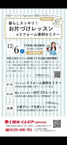 【12/6土】特別コラボ企画!暮らしスッキリお片付けレッスン無料開催のお知らせ