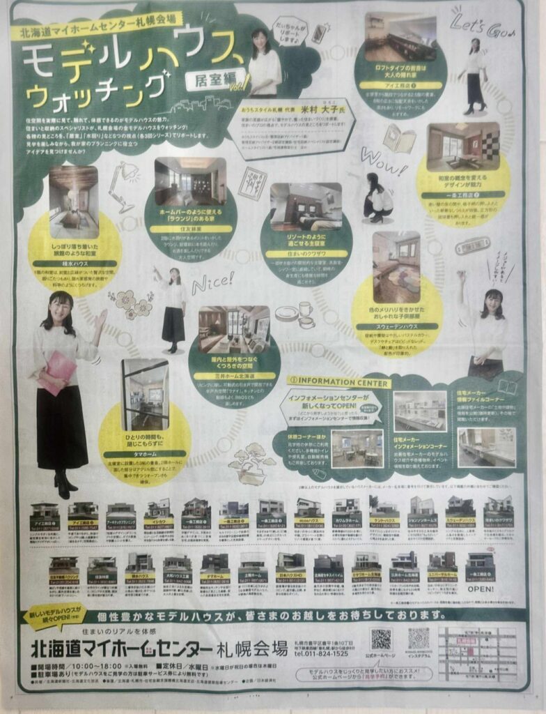 北海道マイホームセンター様の折込広告内にて連載していた「モデルハウスウォッチング」が紙面掲載広告となりました。