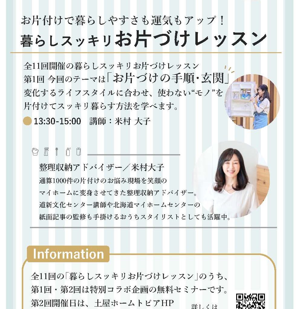 開運を意識した居住空間の見直しをしませんか? おうちスタイル札幌代表・米村大子の風水インテリアアドバイザーの資格を活かした講座となります。 道新文化センター大通教室での単発講座です。 講座詳細・お申し込みは、道新文化セン […]