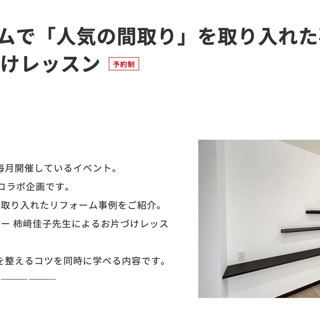 土屋ホームトピアコラボイベント・暮らしスッキリお片付けレッスンのお知らせ