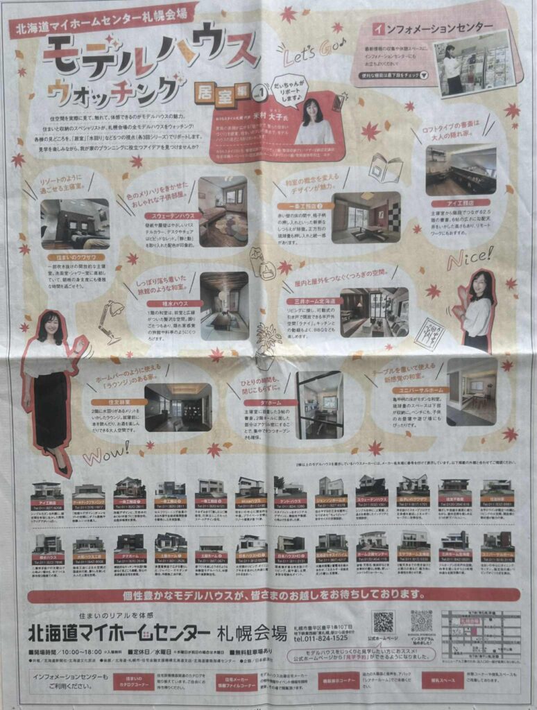これまで、北海道マイホームセンター様の折込広告内にて連載していた「モデルハウスウォッチング」が紙面掲載広告となりました。